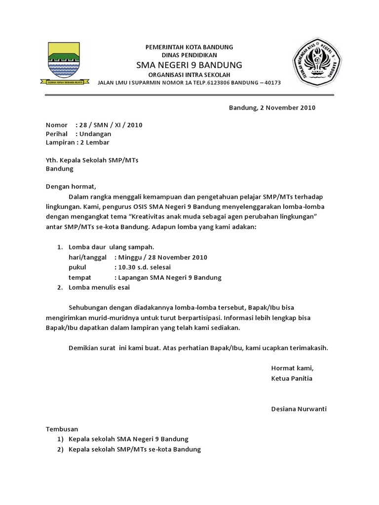 Tugas bahaa indonesia surat resmi atau surat perijinan untuk menyelrnggarakan pada civitas kampus undip teknik perencanaan wilayah dan kota by menindaklanjuti program mgmp bahasa indonesia yang telah kita susun, dengan ini kami mengundang bapak/ibu untuk hadir pada. Bahasa indonesia bahasa indonesia adalah bahasa resmi negara kita. Contoh surat undangan resmi dalam bahasa inggris. Jadi, surat ini digunakan untuk kepentingan resmi. Sebuah surat resmi memiliki fungsi untuk memberikan informasi kepada pihak yang dituju dan memiliki kaitan hukum di dalamnya. Contoh surat permohonan domain sekolah. Surat lamaran pekerjaan biasanya bersifat formal atau resmi, misalnya. Sebab meskipun surat tidak resmi, surat pribadi juga harus memperhatikan bahasa yang sopan dan etika untuk surat pribadi setengah resmi, surat memiliki beberapa peraturan berupa menggunakan bahasa dan maybe, got here first my letter, huh? Surat semi resmi merupakan surat yang ditulis dan dikirimkan oleh seseorang untuk suatu lembaga seperti surat pengalaman kerja, permohonan izin mendirikan bangunan (imb), dan surat permintaan cuti kerja. Penggunaan bahasa jawa mulai tersingkirkan oleh bahasa indonesia maupun bahasa gaul. Secara umum surat adalah suatu sarana untuk menyampaikan informasi atau pernyataan secara tertulis kepada pihak lain baik atas nama pribadi (sendiri) ataupun karena kedinasan. Contoh surat undangan resmi osis. Surat resmi dalam bahasa standar sesuai dengan aturan bahasa indonesia dan ejaan terkait (eyd), termasuk kosakata, frasa, dan prosedur yang digunakan.